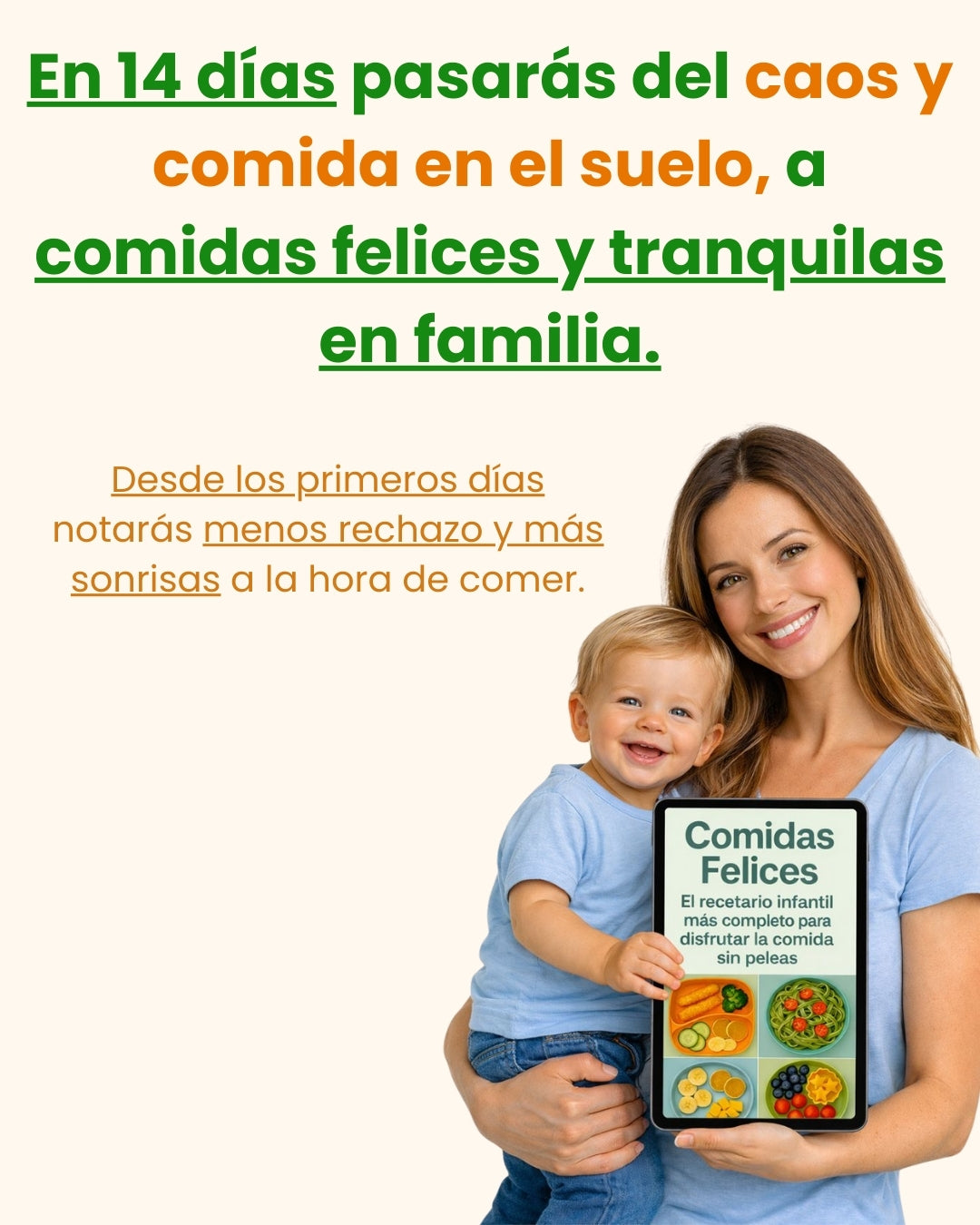 Justamente por eso existe Comidas Felices. Las recetas ayudan a que acepte alimentos poco a poco, sin forzar ni generar rechazo. Menos lucha, más disfrute.